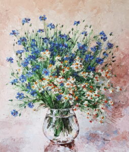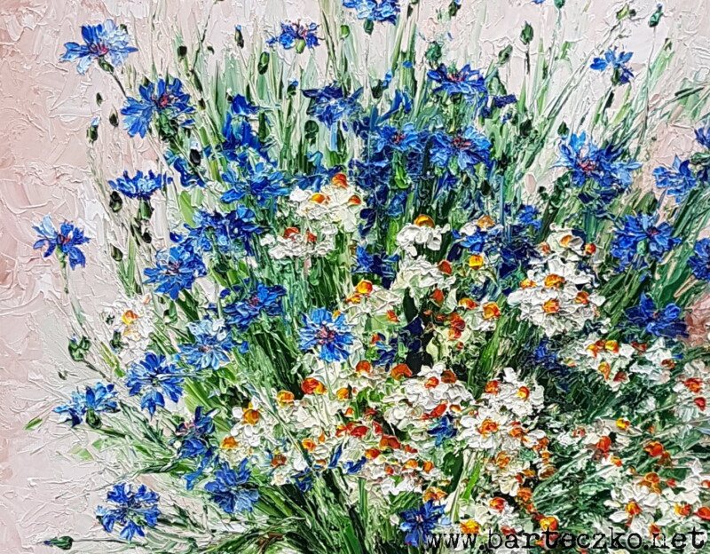 Dodałam na stronę ostatni z namalowanych w tym roku bukiet pt. „Lato z chabrami„. To chabry i rumianki w smukłym wazonie, na brązowo-szarym tle. Wyszły bardzo nastrojowo – zapraszam do zobaczenia wszystkich namalowanych w tym roku bukietów z chabrami 🙂