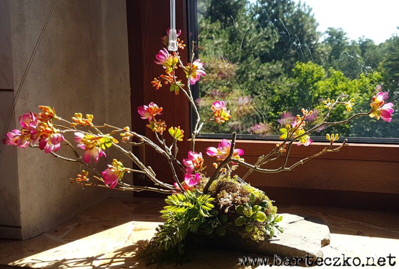 Strona główna / Drobiazgi w domu / Na wiosnę / Wesoły zając / Wesoły zając—Mała wysepka z minidrzewkami kwitnącymi na różowo