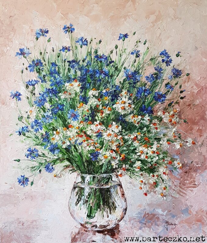 Obraz namalowałam farbami olejnymi na płótnie, grubą warstwą farby, i oczywiście malarską szpachlą 😉