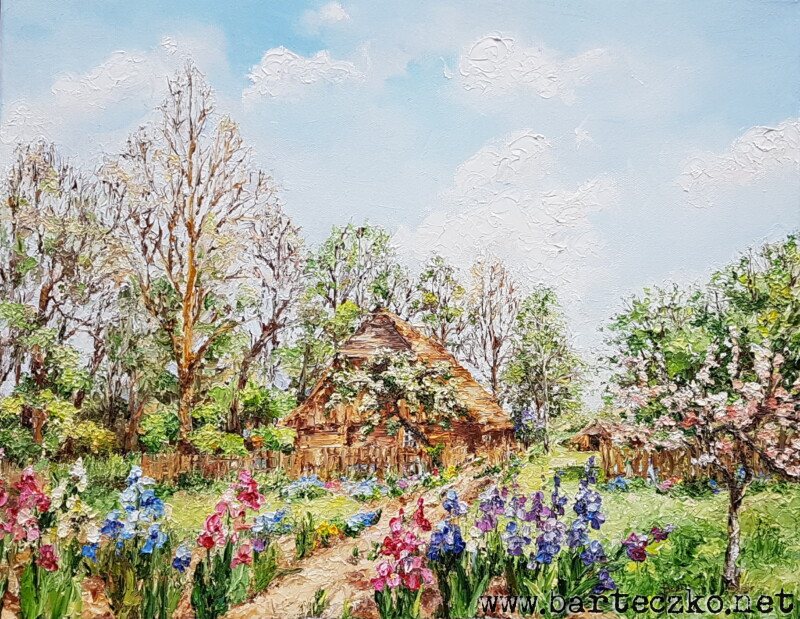 Majowy dzień jest taki piękny… Obsadzona kolorowymi irysami dróżka prowadzi do starej drewnianej chaty przy niewielkim zagajniku. Kwitną jeszcze jabłonie, pod płotem niebieszczą się niezapominajki, a białe kłębiaste obłoczki na niebie zwiastują dobrą pogodę na cały dzień.