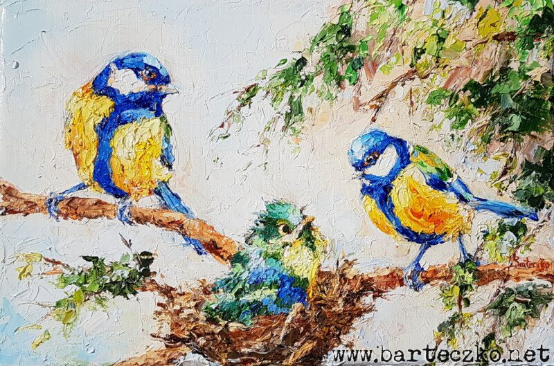 Rodzinka sikorek Tatuś, mamusia i małe pisklątko…Pachtworkowa rodzinka w postaci sikorek w naturalnym środowisku. Pisklę jest nieco przekorne, jak to wszystkie maluchy.. 😉
