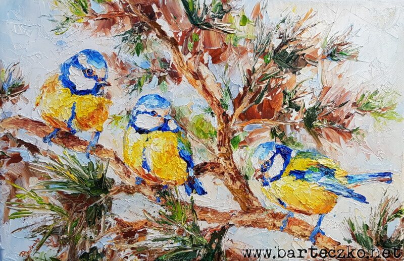 Zachowanie sikorek modraszek nieoczekiwanie skojarzyło mi się z naradą – wszystkie wyglądają jakby się nad czymś zastanawiały. Widzę tu zgłoszenie postulatów dotyczących przydziały areału drzew sosnowych do oblotu w poszukiwaniu nasion z szyszek. Szef rady nadzorczej zarządu parku/lasu zastanawia się nad zasadnością/prawidłowością wypełnienia wniosku 😉