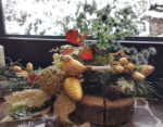 Mały świąteczny stroik w naturalnym stylu: na drewnianym plastrze ze spękanego sosnowego drewna, wśród Czytaj całość