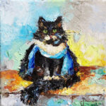 Jest nieco zimno, wiec mimo słonecznego dnia czarny kotek owinął się niebieskim szalikiem. Siedzi na Czytaj całość